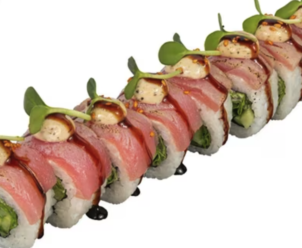 Рис, соус трюфельный, салат листовой, огурец, тунец, соус унаги, кунжут. Соевый соус, имбирь и васаби приобретаются отдельно. Изображение на сайте и внешний вид продукта могут отличаться.