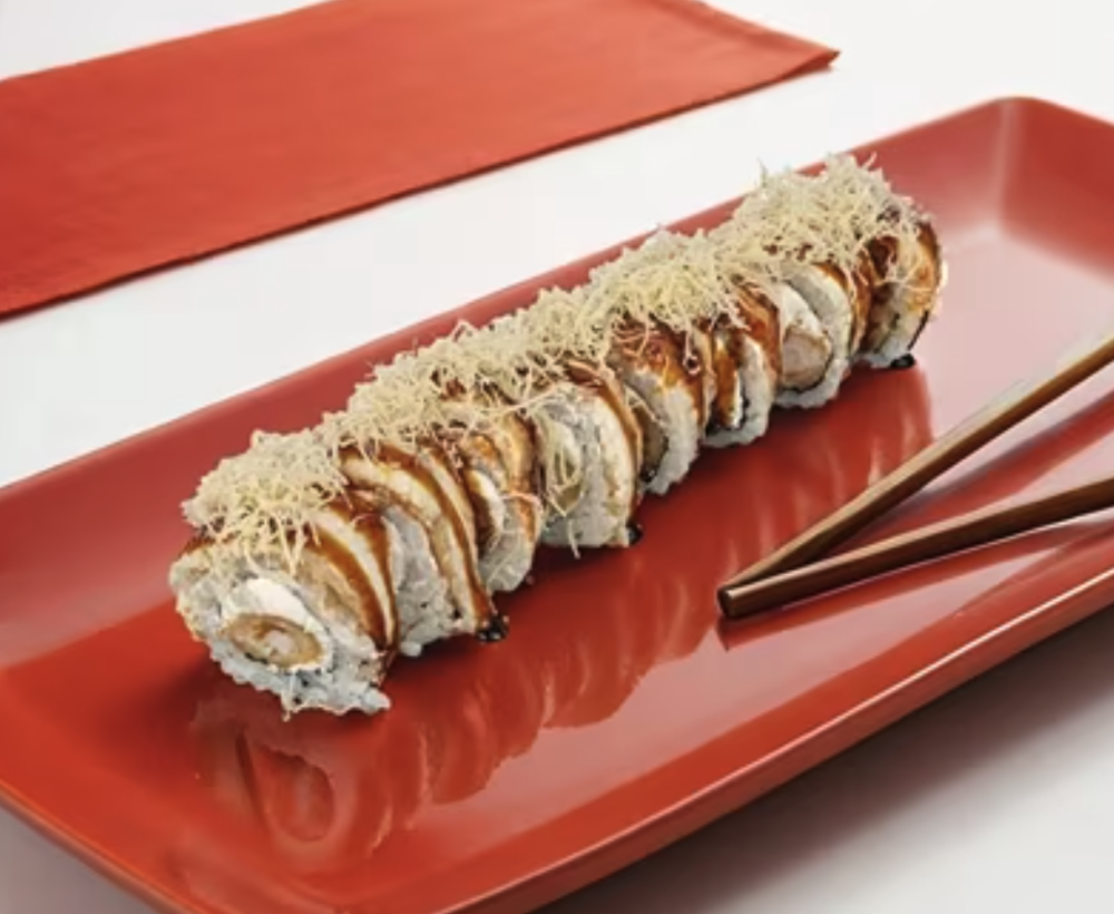 Рис, сыр сливочный, креветки, Угорь, Унаги соус, тесто катаифи. Соевый соус, имбирь и васаби приобретаются отдельно. Изображение на сайте и внешний вид продукта могут отличаться.