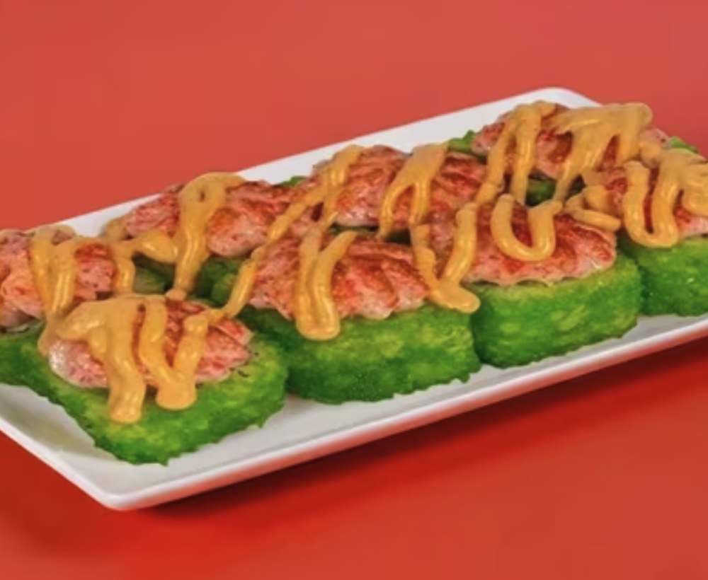 Рис тобика зелёная сыр сливочный тортилья снежный краб, соус для запекания, спайс соус. Соевый соус, имбирь и васаби приобретаются отдельно. Изображение на сайте и внешний вид продукта могут отличаться.