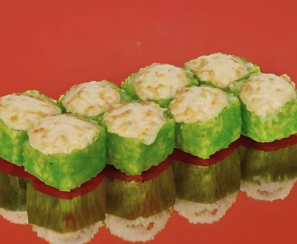 Рис, сыр сливочный, угорь, кляр, лепешка тортилья, спайси соус, масаго зелёная, шапочка для запекания с сыром дорблю. Соевый соус, имбирь и васаби приобретаются отдельно. Изображение на сайте и внешний вид продукта могут отличаться.