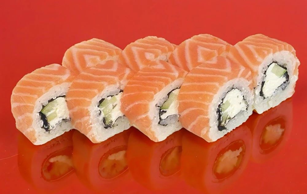 Лосось, огурец, сыр. Соевый соус, имбирь и васаби приобретаются отдельно. Изображение на сайте и внешний вид продукта могут отличаться.