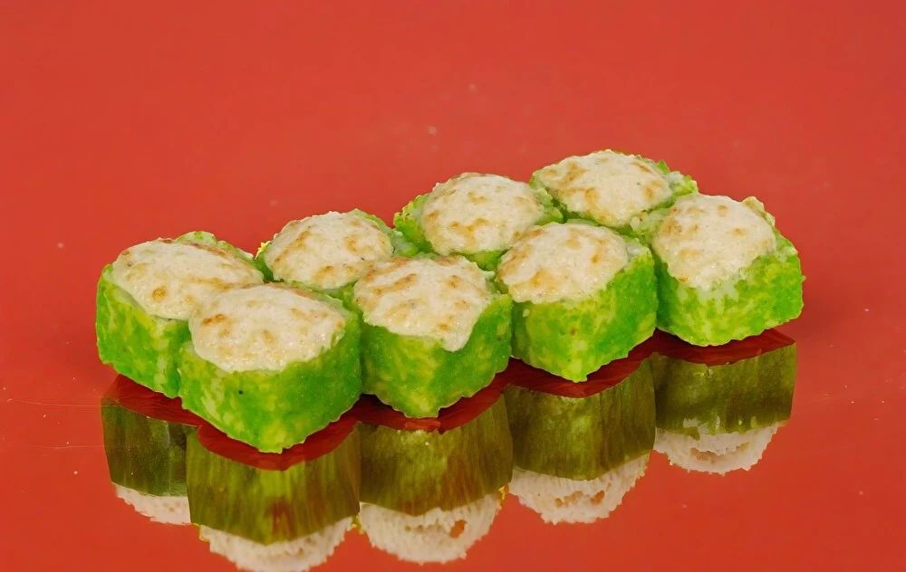 Рис, сыр сливочный, угорь, кляр, лепешка тортилья, спайси соус, масаго зелёная, шапочка для запекания с сыром дорблю. Соевый соус, имбирь и васаби приобретаются отдельно. Изображение на сайте и внешний вид продукта могут отличаться.