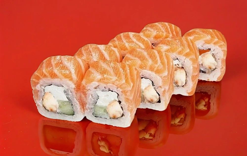 Лосось, сыр филадельфия, огурец, снежный краб. Соевый соус, имбирь и васаби приобретаются отдельно. Изображение на сайте и внешний вид продукта могут отличаться.
