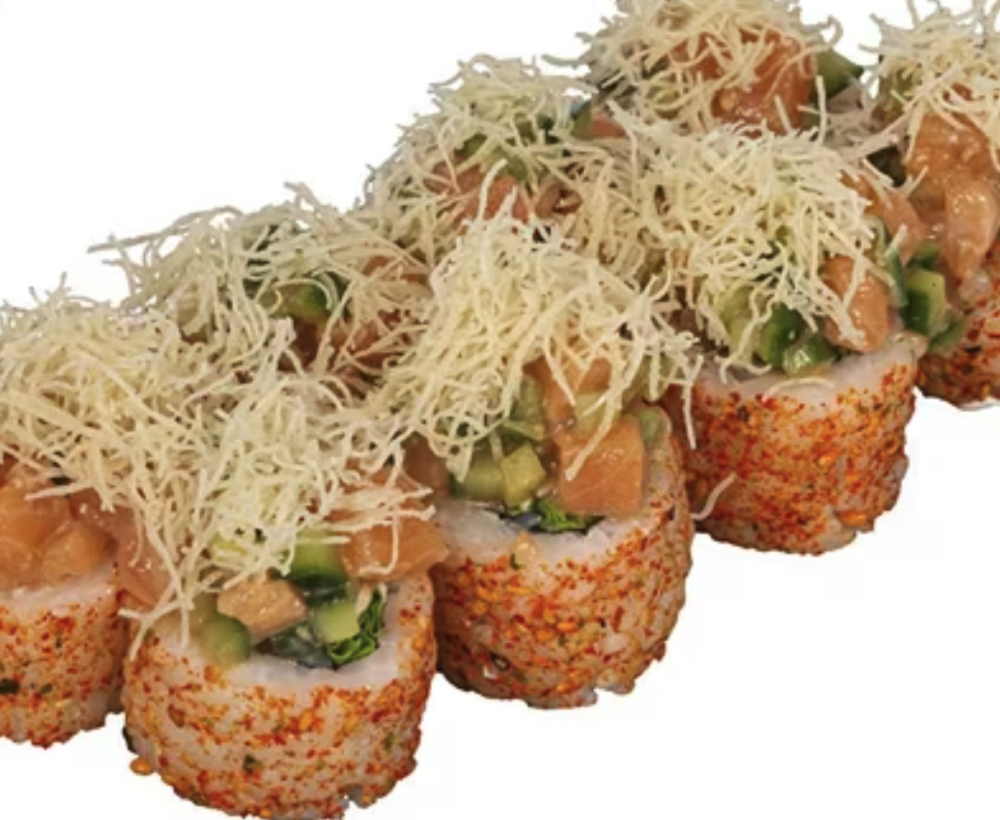 Рис, сыр сливочный, салат листовой, лосось, огурец, азиатский соус, специи, катаифи. Соевый соус, имбирь и васаби приобретаются отдельно. Изображение на сайте и внешний вид продукта могут отличаться.